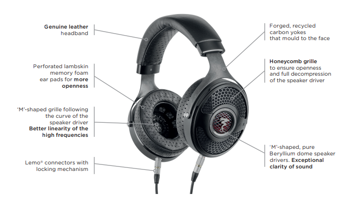 De full-range Beryllium, ‘M’-formede høyttalerenhetene er helt åpne og fungerer uten passiv eller aktiv korrigering, fra 5 Hz til over 50 kHz! Lytteopplevelsen de gir er bemerkelsesverdig realistisk, presis og dynamisk, med en lydscene som både er bred og dyp: lukk øynene og føl musikerne ved siden av deg. Ved å kombinere komfort og estetikk, leverer Utopia kompromissløs design og konsept. De smidde, resirkulerte karbon-bøyene er moderne og sofistikerte i stil, samtidig som de gir mer letthet. Den bikakeformede grillen og Black Chrome-ringen viser subtile designdetaljer, som Yin & Yang på den ytre delen, den svarte og røde dobbelgrillen på høyttalerenheten, og mer. Så mange elementer som sterkt uttrykker Utopia: den perfekte balansen mellom teknologi og design!